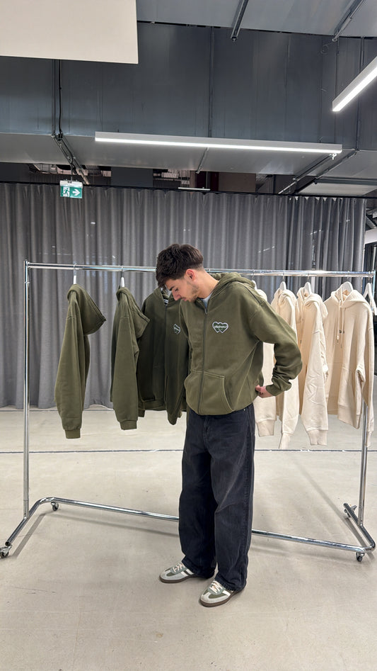 Hoodie zippé "logo bouclette" kaki délavé