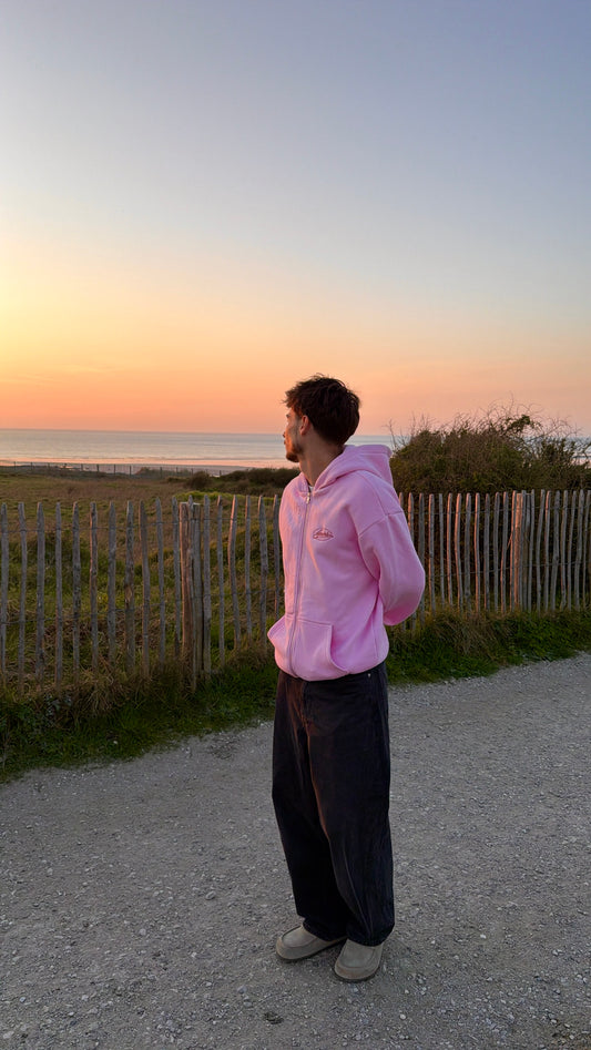 Hoodie zippé brodé "here and now" rose