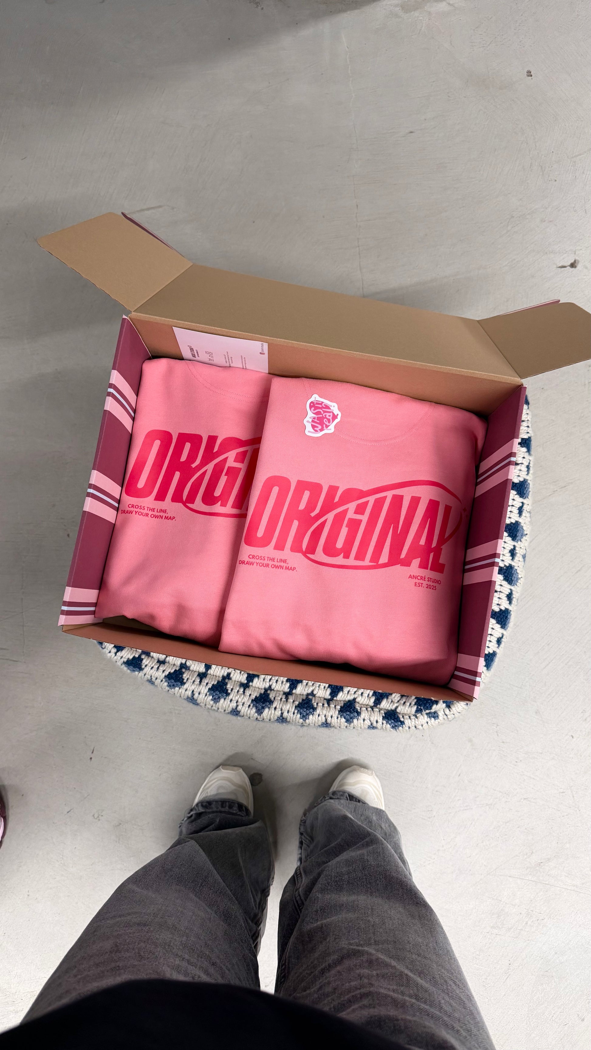• 2 sweats sans capuche "original" rose pour matcher avec la personne de ton choix.